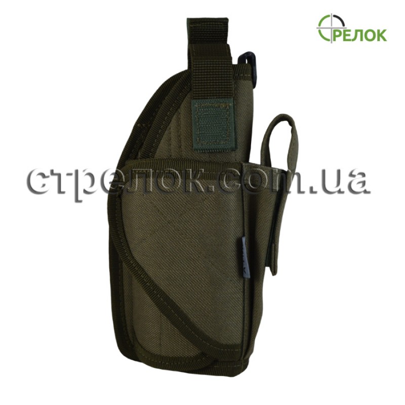 Универсальная кобура от известного украинского производителя A-line. Система регулировок позволяет использовать кобуру практически с любым короткоствольным оружием, в том числе и оборудованнми подствольными модулями. Принцип данной кобуры "заверни сам". При подгонке дублирующая текстильная застежка надежно фиксирует оружие, плотно облегая все неровности пистолета. Установлена пластиковая направляющая для прицельных приспособлений, что значительно облегчило извлечение и вкладывание оружия стрелком. Карман для дополнительного магазина имеет регулируемый по длине защитный клапан. Места с повышенной нагрузкой на «разрыв» обработаны на закрепочном автомате.При изготовление кобуры используются только качественные материалы (ткань Cordura 1000d, фурнитура 2M).Цвет: олива.
